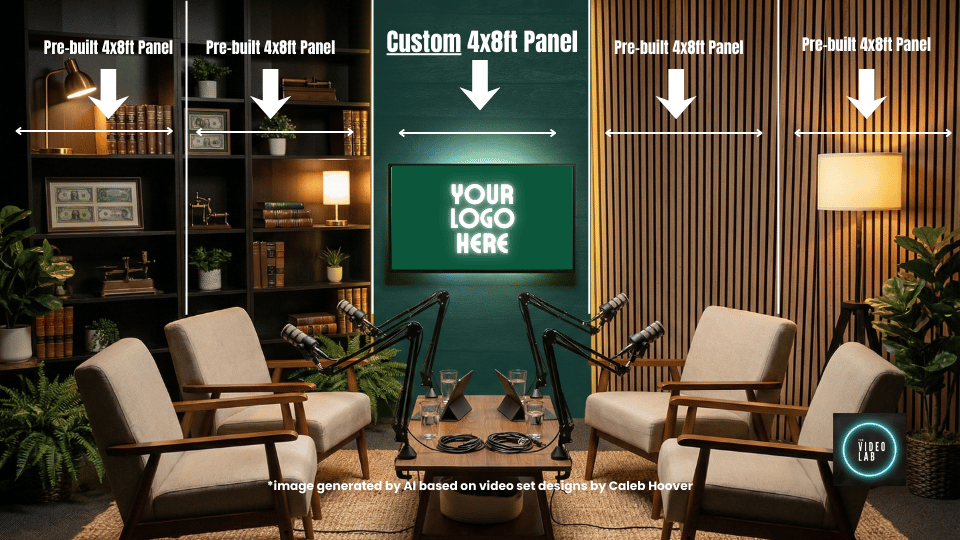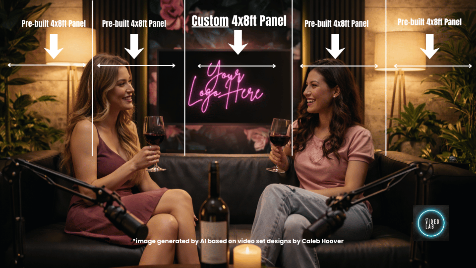 We’ll work with you to design and build a custom 4x8ft panel that is the center piece of your custom video set at The Video Lab.